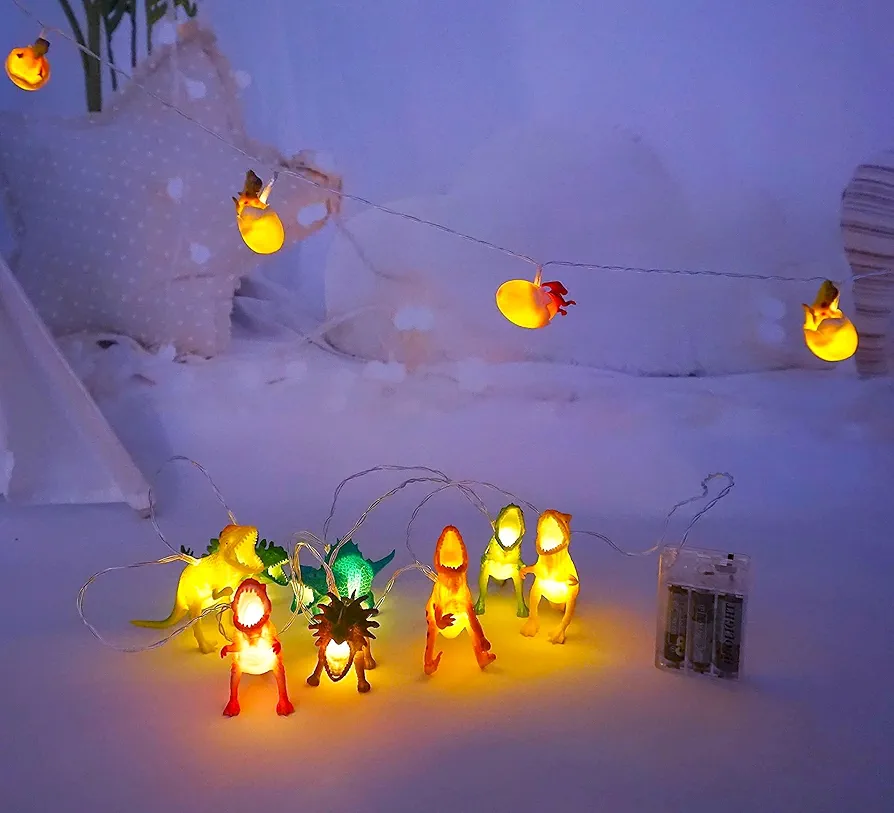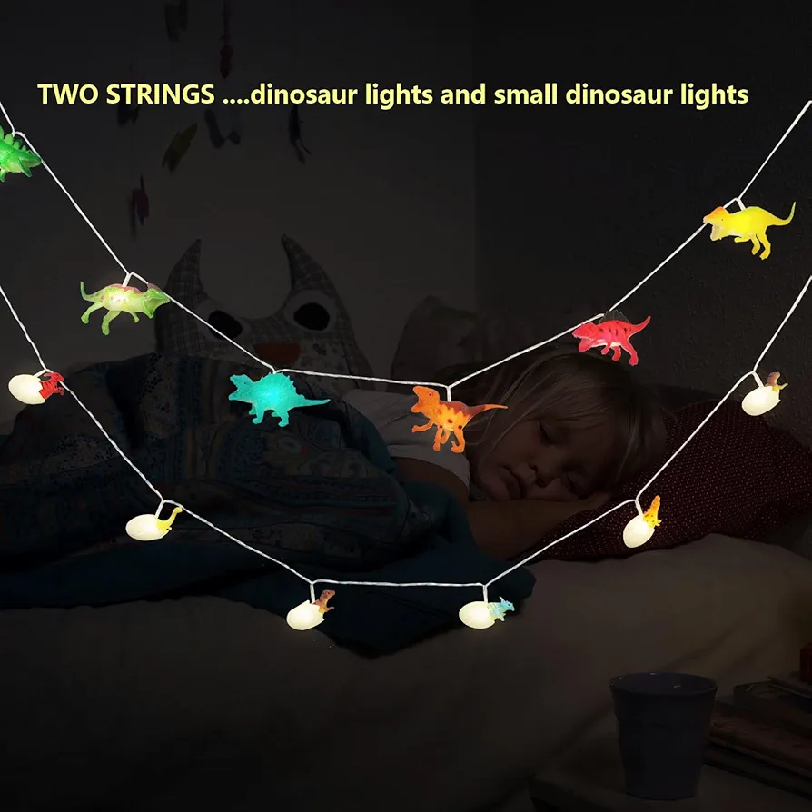 2 Pack LED Dinosaur String Lights for Boys Room 8LED 5.6ft Dino Toys String Lights Battery Operated Dinosaur Hanging Lights Indoor Bedroom Party Birthday Decoration Children Gifts