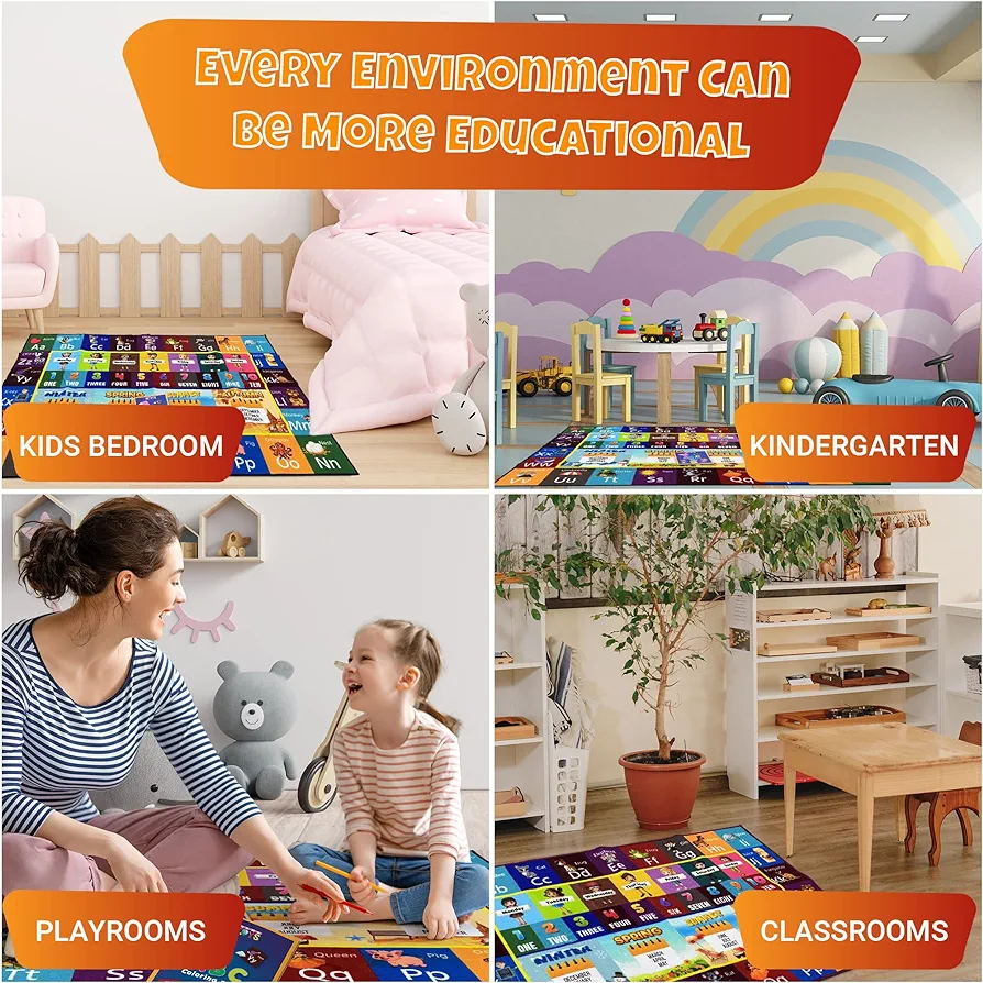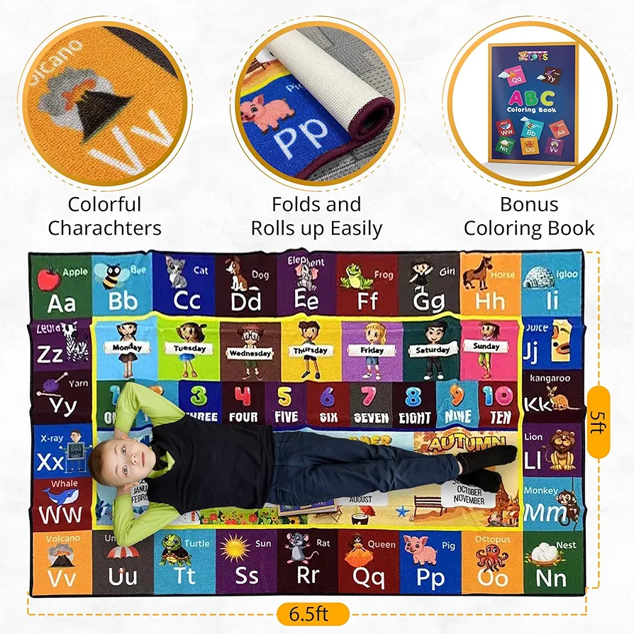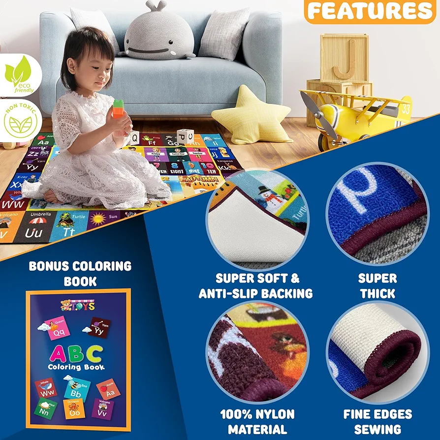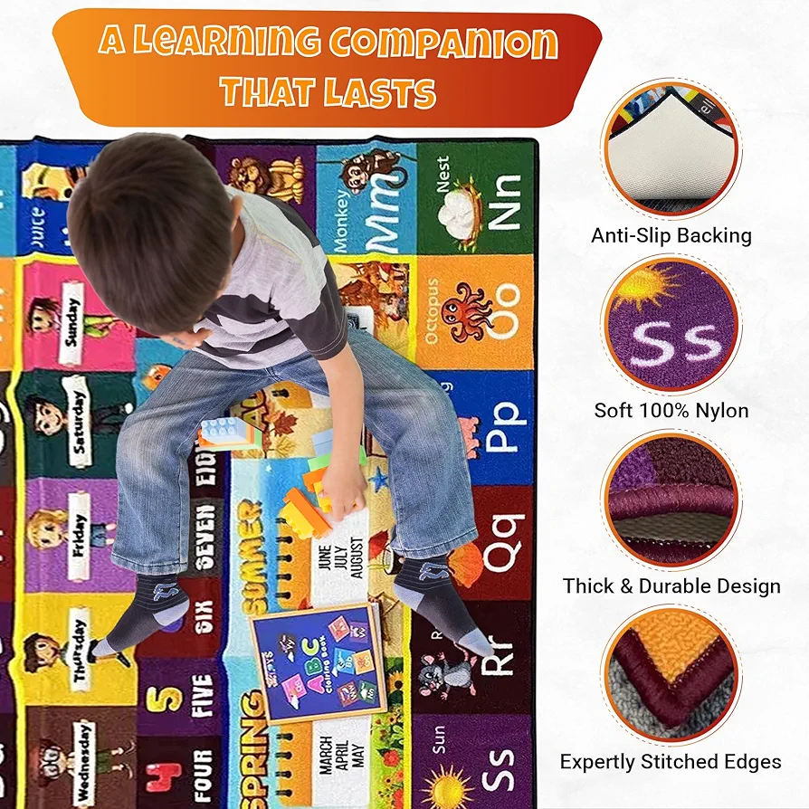 ABC Rug Collection – Educational Rug for Kids, ABC Rug for Classroom and Playroom, Durable Classroom Rug – Non Slip & Washable Nursery Rug