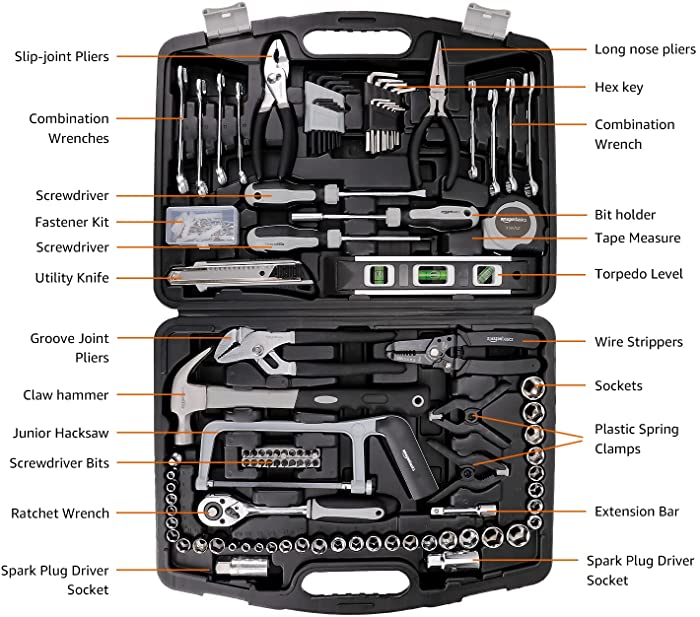Amazon Basics 173-Piece General Household Home Repair and Mechanic's Hand Tool Kit Set