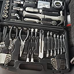 DescriptionProduct DescriptionThe 173-Piece General Household Hand Tool Set includes: *8pcs combination wrenches: 10mm,12mm,13mm,14mm,3/8 inch,7/16 inch,1/2 inch,9/16 inch *22pcs hex keys: 1.27mm, 1.5mm, 2mm, 2.5mm, 3mm, 3.5mm, 4mm, 4.5mm, 5mm, 5.5mm, 6mm, 0.05 inch, 1/16 inch, 5/64 inch, 3/32 inch, 7/64 inch, 1/8 inch, 9/64 inch, 5/32 inch, 3/16 inch, 7/32 inch, 1/4 inch *1pc 6-inch slip-joint pliers, *1pc 6-inch long nose pliers, *2pcs screwdrivers:SL1/4 x4 inch, PH2x4 inch *1pc 6.35mm bits holder, *70pcs fasteners, *1pc 12FT measuring tape, *1pc 18mm utility cutter, *1pc 9-inch torpedo level, *1pc 8-inch water pump pliers, *1pc 6-inch wire strippers, *1pc 8oz claw hammer, *2pcs 3-inch clamps, *1pc 6-inch hand saw, *20pcs bits, SL1/8,5/32,3/16,1/4; PH0,1,2,3,PZ0,1; PZ2,3,H1/8,5/32,3/16,1/4; T10,15,20,adaptor *1pc 3/8-inch ratchet wrench, *1pc extension bar, 3/8 inch to 3 inch *2pcs 3/8-inch spark plugs:5/8 inch, 13/16 inch *1pc adaptor, 1/4 inch(male) to 3/8 inch (female) *16pcs 1/4-inch sockets: 5mm,6mm,7mm,8mm,9mm,10mm,11mm,12mm,13mm,3/16 inch,7/32 inch,1/4 inch,5/16 inch,3/8 inch,7/16 inch,1/2 inch *18pcs 3/8-inch sockets:8mm,9mm,10mm,11mm,12mm,13mm,14mm,15mm,17mm,19mm, 5/16 inch,3/8 inch,7/16 inch,1/2 inch,9/16 inch,5/8 inch,11/16 inch,3/4 inch From the ManufacturerAmazon Basics Product information