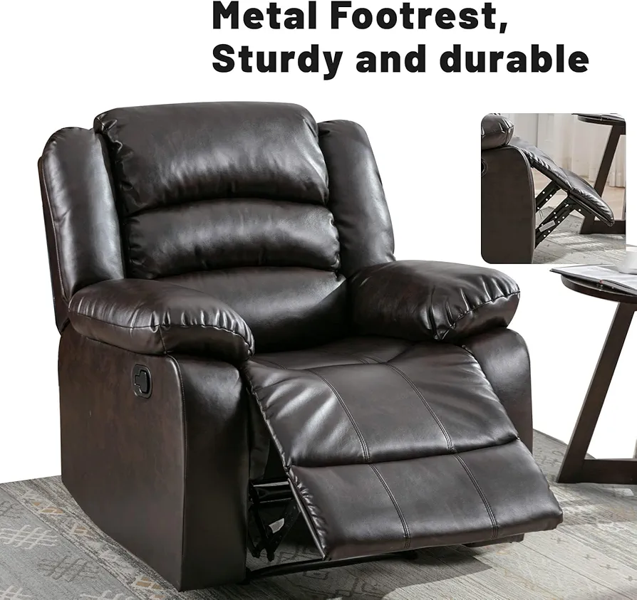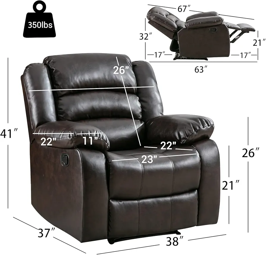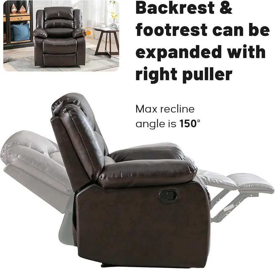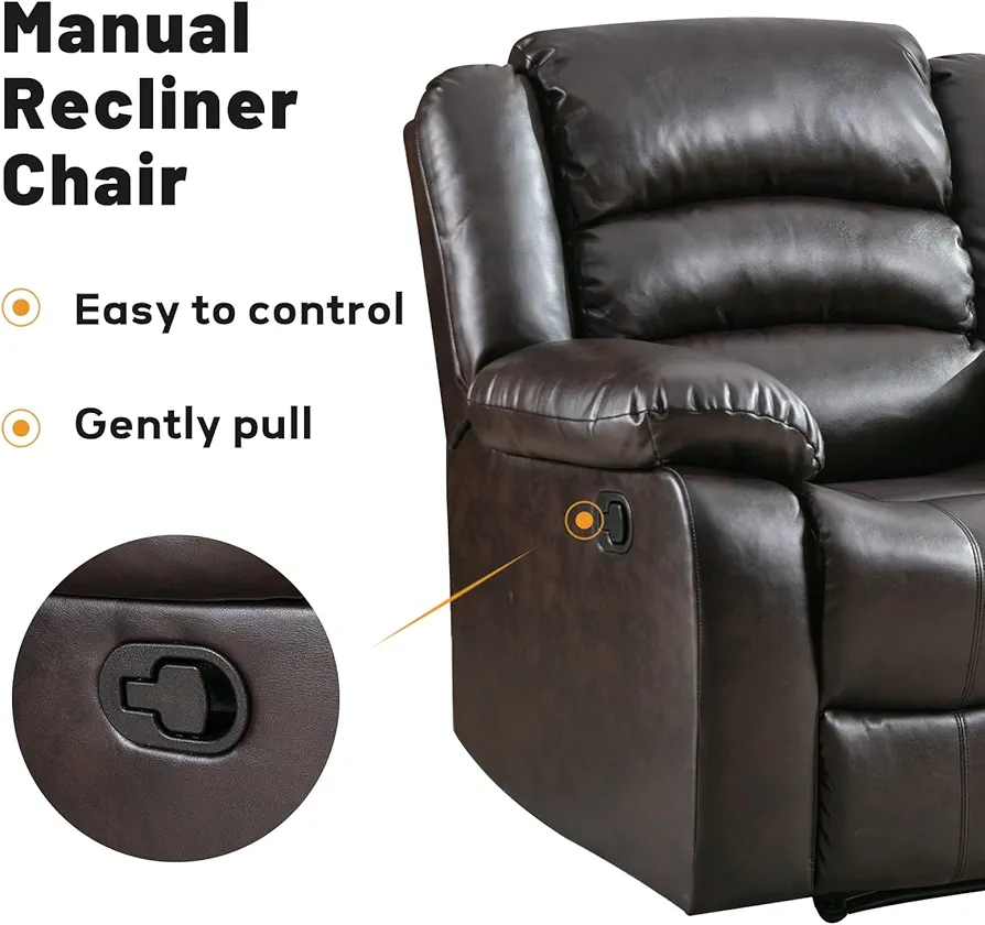 ANJ Manual Recliner Chair Set of 2, Breathable Faux Leather Reclining Chairs with Overstuffed Arm and Back, Living Room Single Sofa Recliners (Dark Brown)