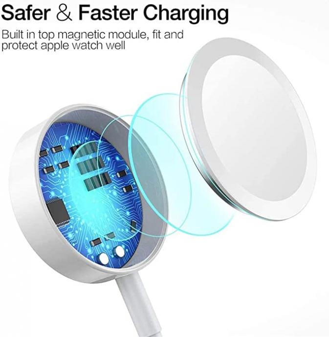 Universal CompatibilityCompatible with Apple Watch Series 7/6/SE/5/4/3/2/1, including all models with 38mm 40mm 41mm 42mm 44mm 45mm Compatible with the special limited editions: Apple Watch Sport, Apple Watch Nike Plus, Apple Watch Hermes, Apple Watch Edition Ultra-strong Magnetic TechnologyHold the back of the Apple Watch close to the iPhone Watch Charging magnetic Port and the magnet will connect steadily and automatically to the iWatch.