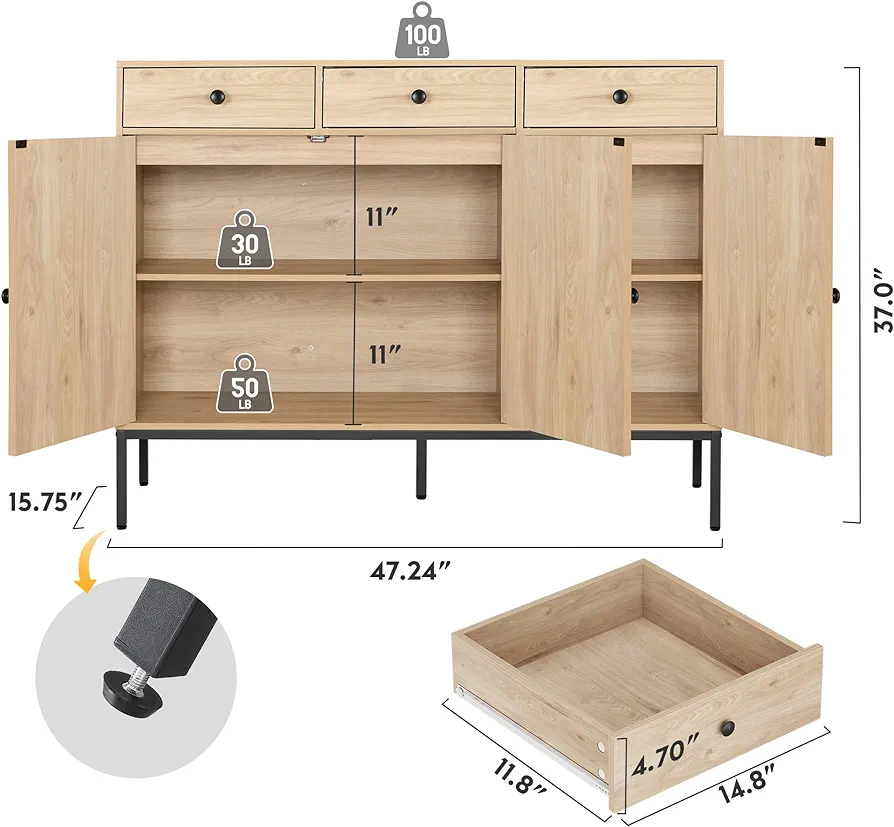 Brand Brafab Color Natural With 3 Drawers Material Natural Rattan + MDF + Metal Recommended Uses For Product Sideboard, Storage Cabinet, Buffet Table, Rattan Cabinet, Buffet Cabinet Product Dimensions 15.75"D x 47.24"W x 37"H See all product information |