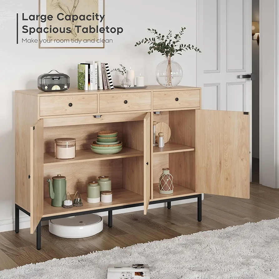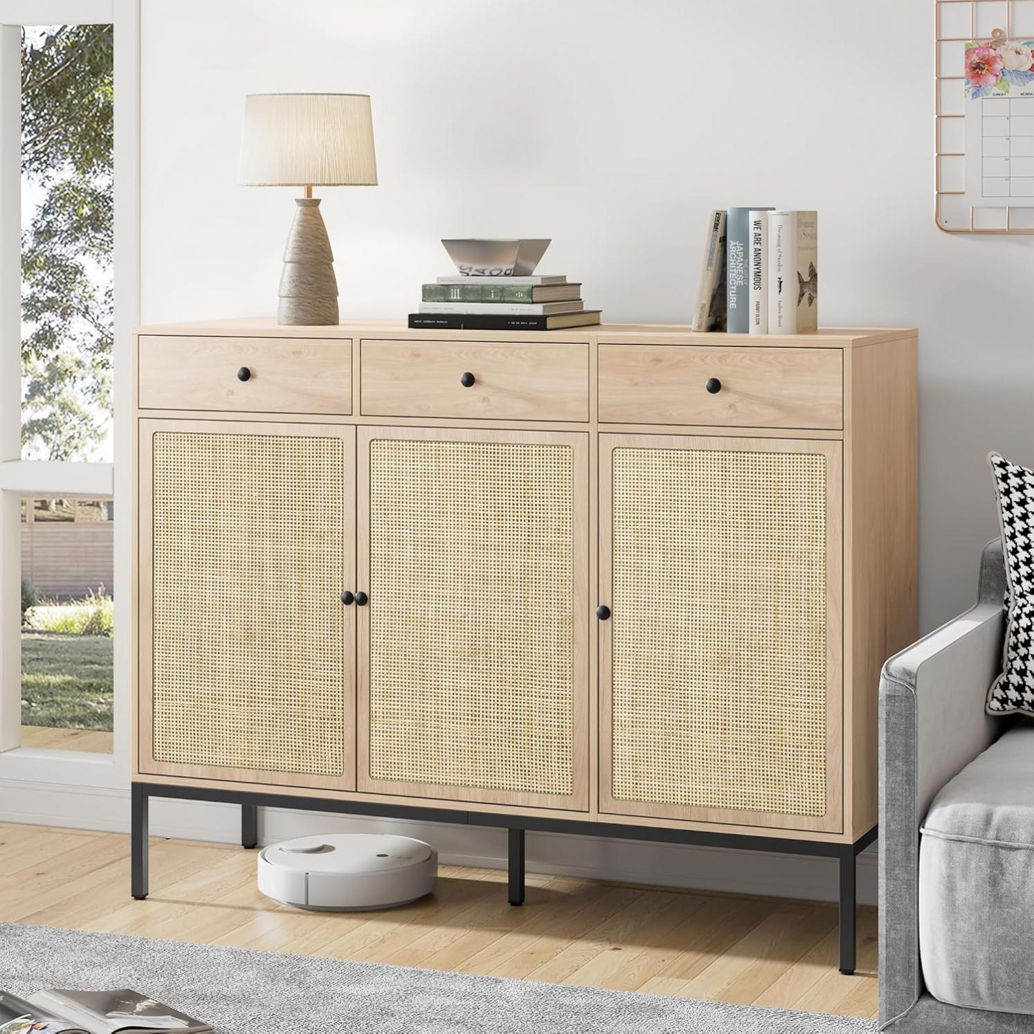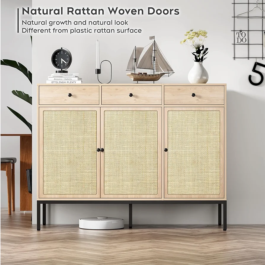 Brafab Rattan Cabinet Storage Sideboard Buffet Table Accent Console for Living Room Entryway Kitchen Dining Room 3 Drawers