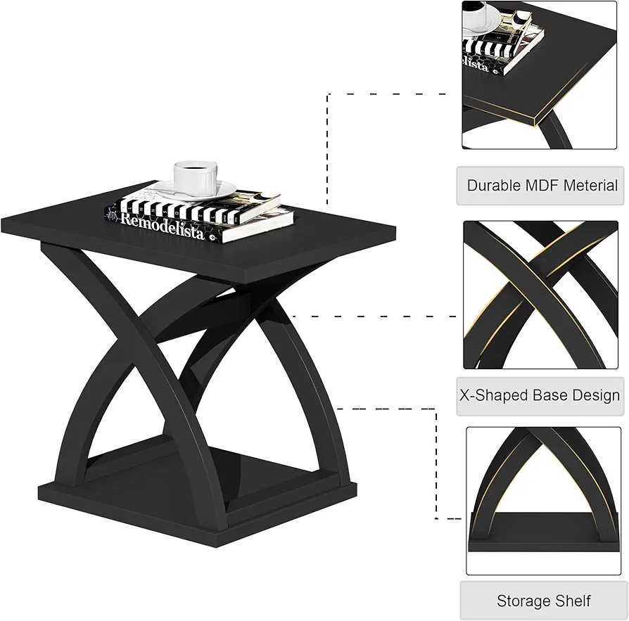 ChooChoo End Side Table Set of 2, Modern End Table with Storage Shelf, X-Design Side Table Living Room