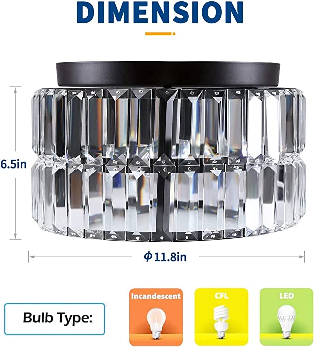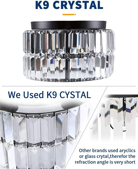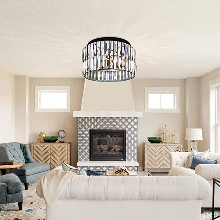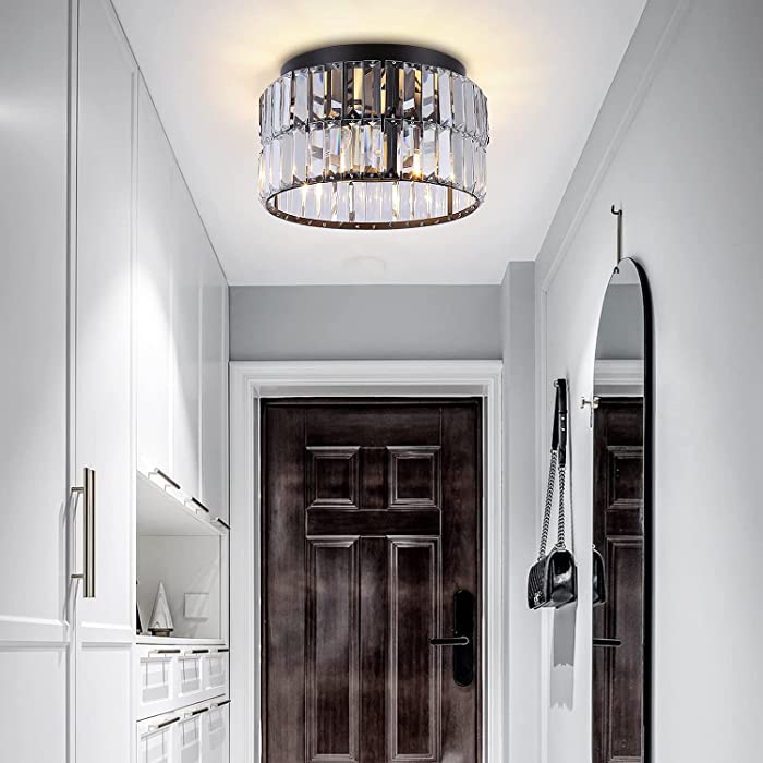 Crystal Flush Mount Ceiling Light, Indoor Modern Close to Ceiling Light with Double Layer K9 Crystal, 3-Light Chandeliers Lighting Fixtures for Living Room Bedroom Porch Hallway Dining Room