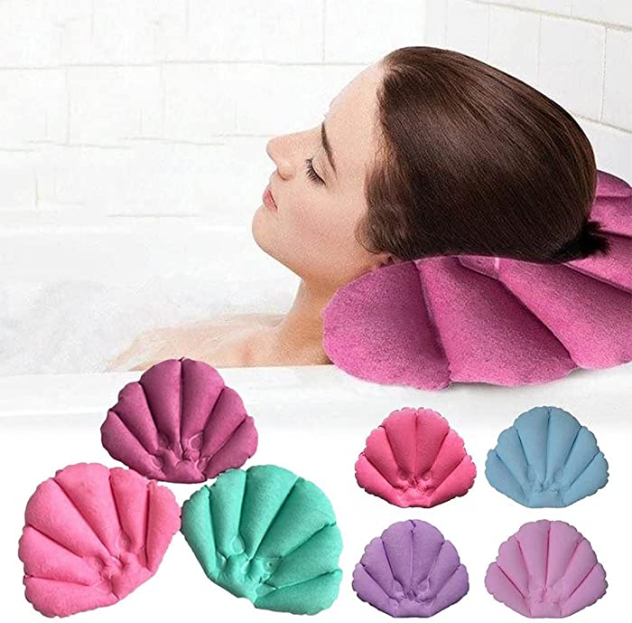 Greewen Soft Bathroom Pillow Home Spa Inflatable Bath Cups Shell Shaped Cushion