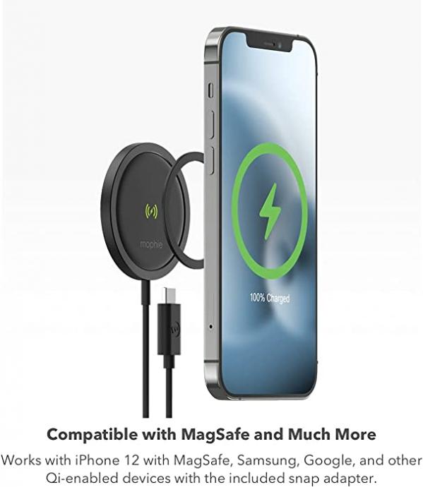 Universal Wireless Charging Compatible with MagSafe and Much More: The magnetic array on the snap+ wireless charger is compatible with MagSafe for iPhone 12 models and any Qi-enabled smartphone.