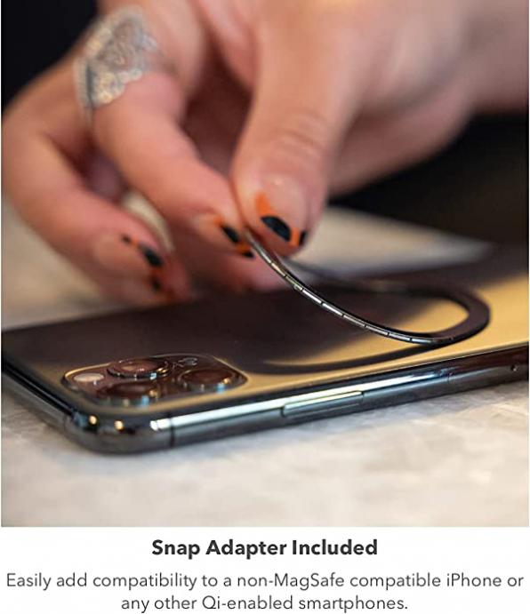 snap Adapter Included: The included snap adapter adds magnetic compatibility to phones that don''t have a magnetic feature like MagSafe. Attach the snap adapter to the back of your phone and it’s instantly compatible.