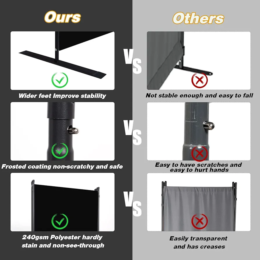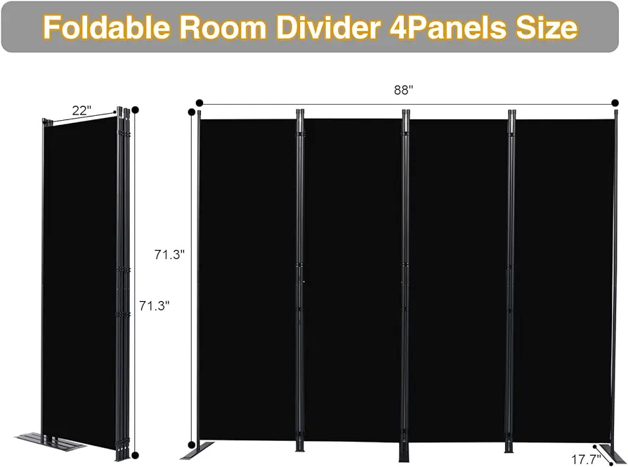 Room Divider, 4 Panel Folding Privacy Screens with Wider Feet, 6 Ft Portable Room Partition for Room Separator, Room Divider Panel 88" W X 71" H, Partition Room Dividers Freestanding,Black