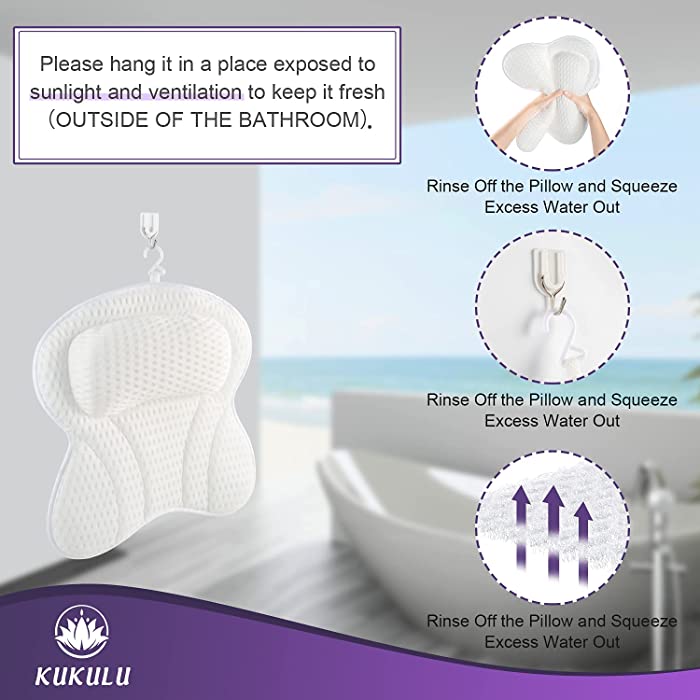 🛀AIR-MESH technology. It keeps our bathtub pillows cool and comfortable. The quilted 4D mesh fabric allows continuous airflow, allowing this spa pillow to dry quickly.